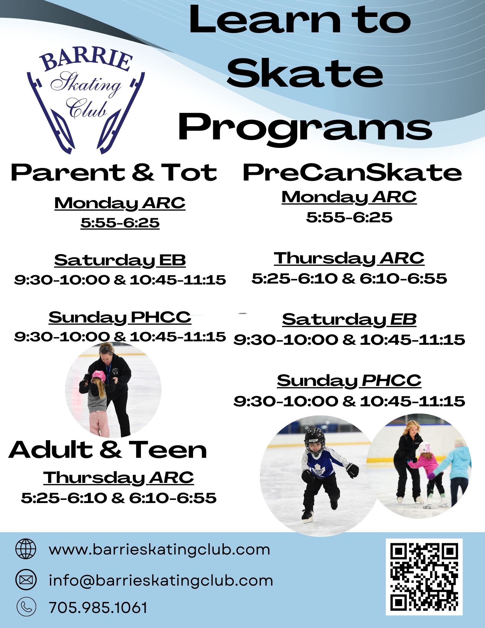 The Barrie Skating Club operates programs out of the Allandale Recreation Centre, the Holly Community Centre and the East Bayfield Community Centre, during the months of October-March.